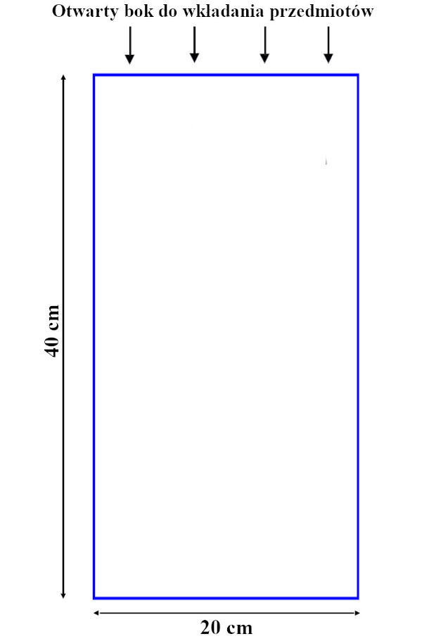 Worek ma szerokość 20 cm, a więc obwód worka równa się 40 cm (20+20, obwód pakowanych przedmiotów musi być zatem mniejszy od obwodu 40 cm, czyli nie powinien przekraczać np. 38 cm.