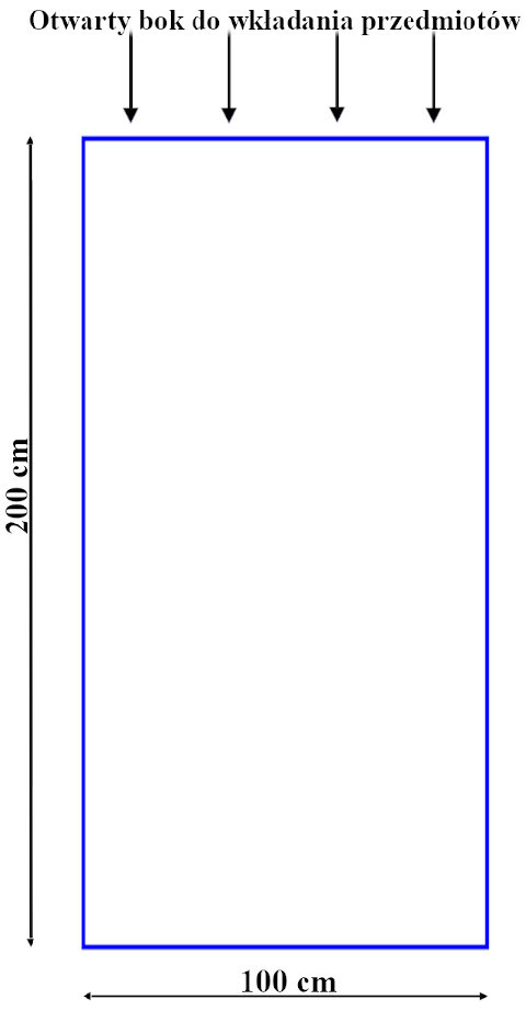 Worek ma szerokość 100 cm, a więc obwód worka równa się 200, obwód pakowanych przedmiotów musi być zatem mniejszy od obwodu 200 cm czyli nie powinien przekraczać np 190 cm.