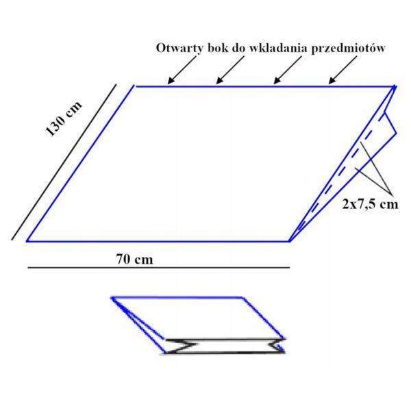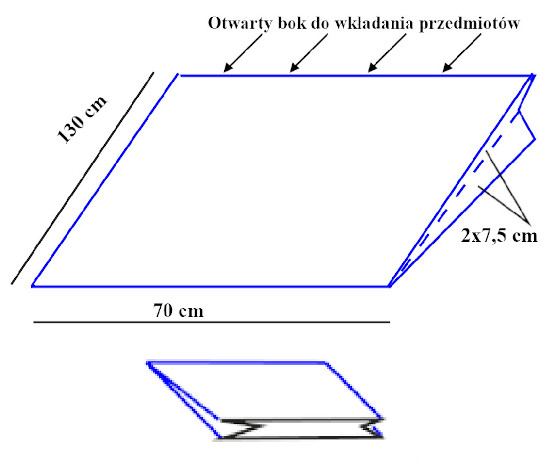 Worek ma szerokość 70 cm oraz zakładkę 2x 7.5 cm , a więc obwód worka równa się