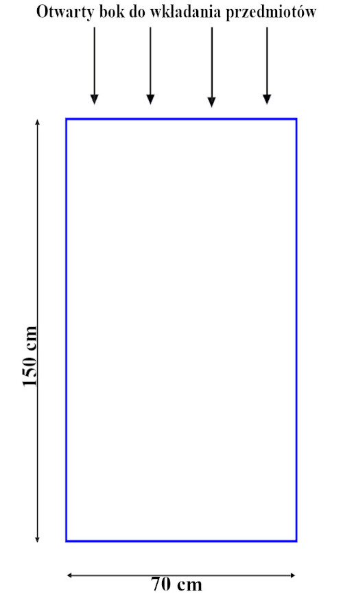 Worek ma szerokość 70 cm, a więc obwód worka równa się 140, obwód pakowanych przedmiotów musi być zatem mniejszy od obwodu 140 cm czyli nie powinien przekraczać np 133 cm.