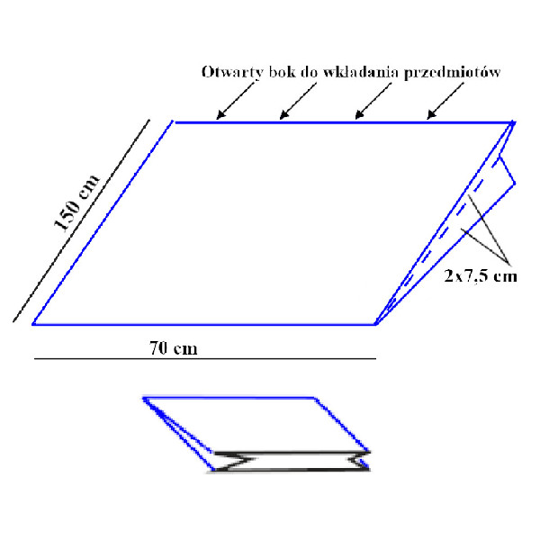 Worek ma szerokość 70 cm oraz zakładkę 2x 7.5 cm , a więc obwód worka równa się